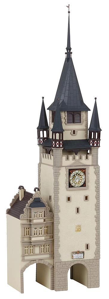 Historisches Stadttor mit seitlichem Anbau, der sich auch einzeln, etwa in einer Stadthäuserzeile, einsetzen lässt. Durch den vorgebauten Aufgang gelangt man über eine Wendeltreppe zum eigentlichen Turmaufgang. Die Turmkrone besitzt vier überdachte Ecktürmchen.