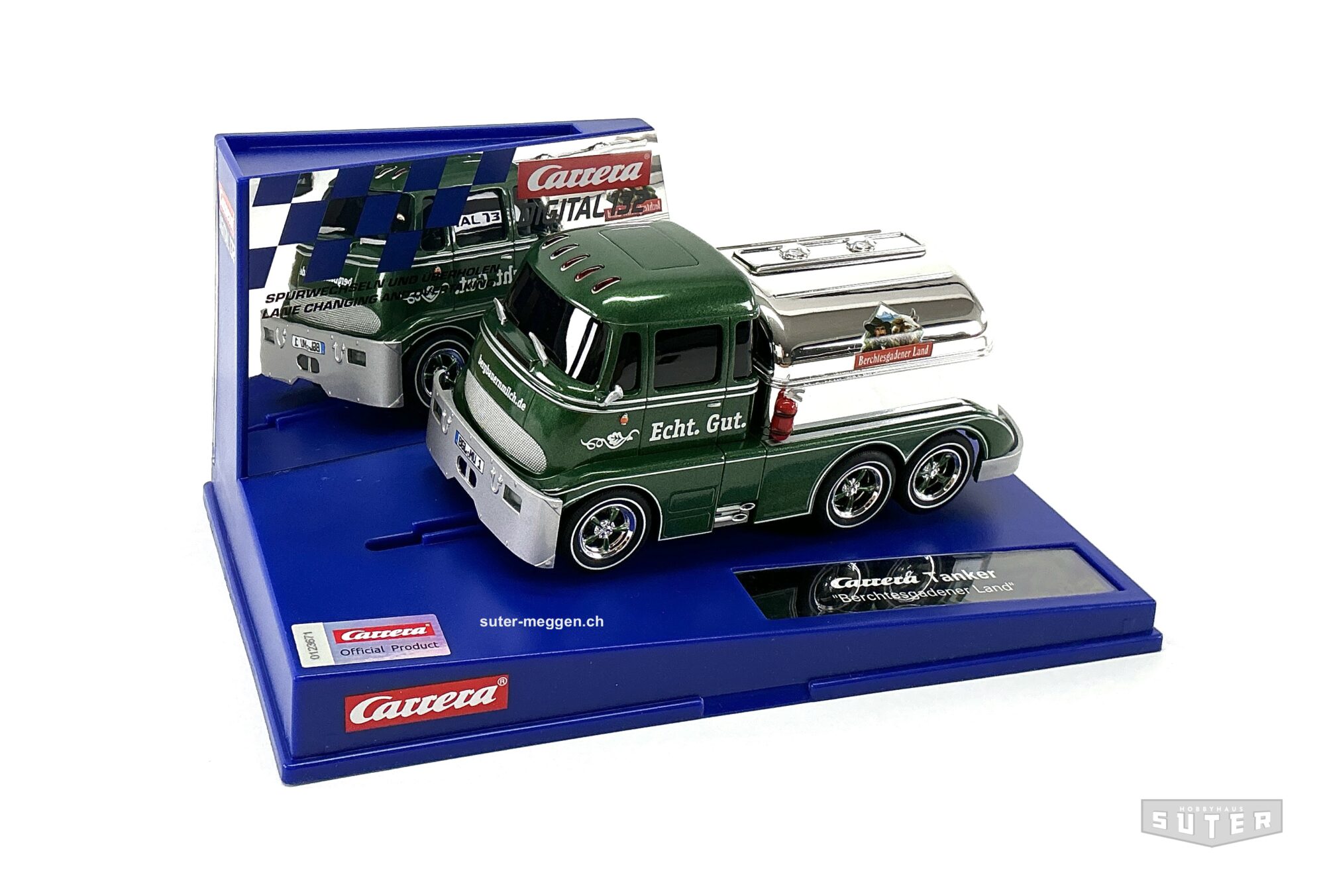 Echt. Gut. Die neueste Variante des Carrera Tankers bringt optischen und akkustischen Lokalkolorit auf die Bahn.