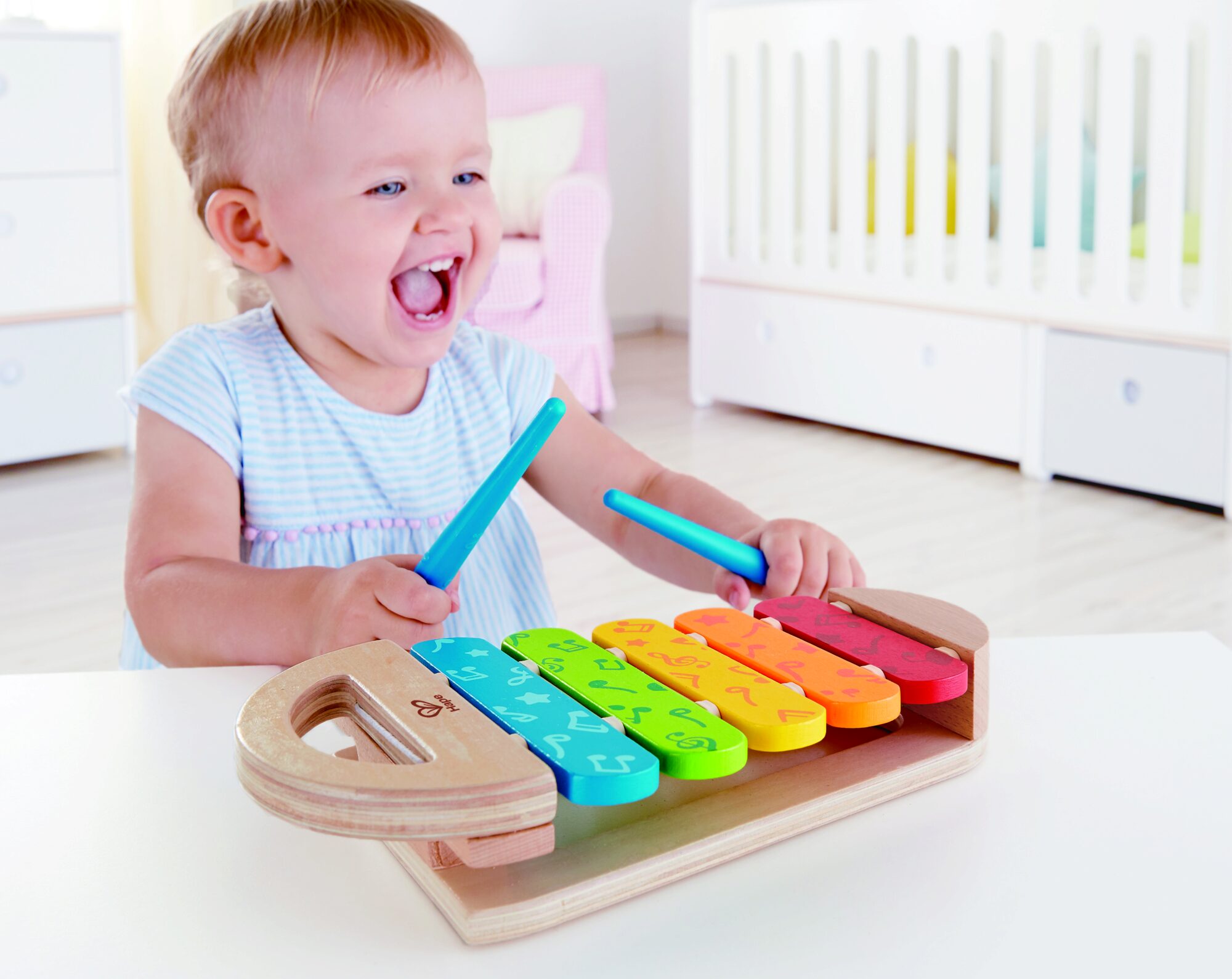 Dieses Xylophon ist das ideale erste Musikinstrument und richtet sich an Kinder ab 12 Monate, die damit in die Welt der Töne und Klänge eintauchen.