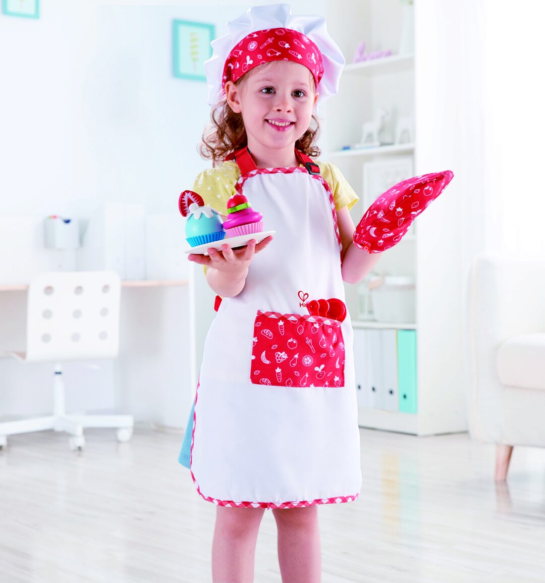 Mit dem Chefkoch-Set zauberst du im Handumdrehen tolle Gerichte. Inbegriffen sind eine Kochmütze, eine Schürze, ein Ofenhandschuh, ein Topflappen und fünf Messlöffel.