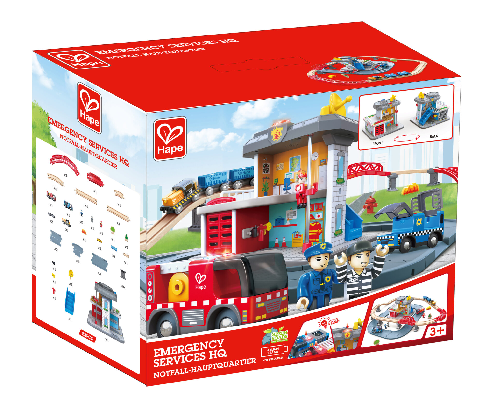 Sorge für Sicherheit auf den Straßen und Schienen – mit diesem Polizei- und Feuerwehrhauptsitz inkusive passender Fahrzeuge!