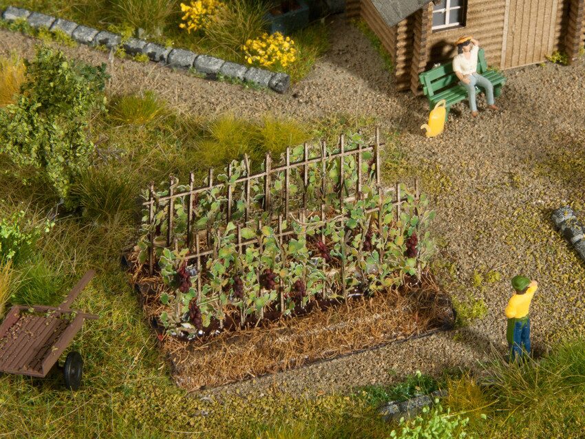 Deko-Minis sind einbaufertig ausgestaltete kleine Felder mit verschiedenen Pflanzen. Sie werden einfach aus der Verpackung genommen und in die Modelllandschaft eingeklebt.