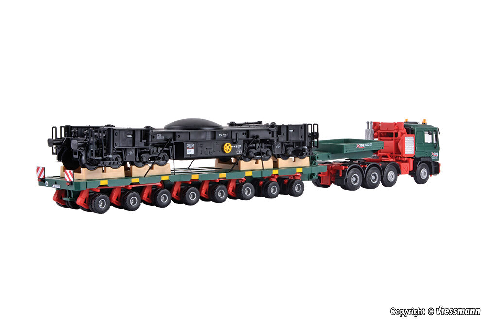 H0 MAN SK mit SCHEUERLE Plattformwagen und Unterteil Schienenkran