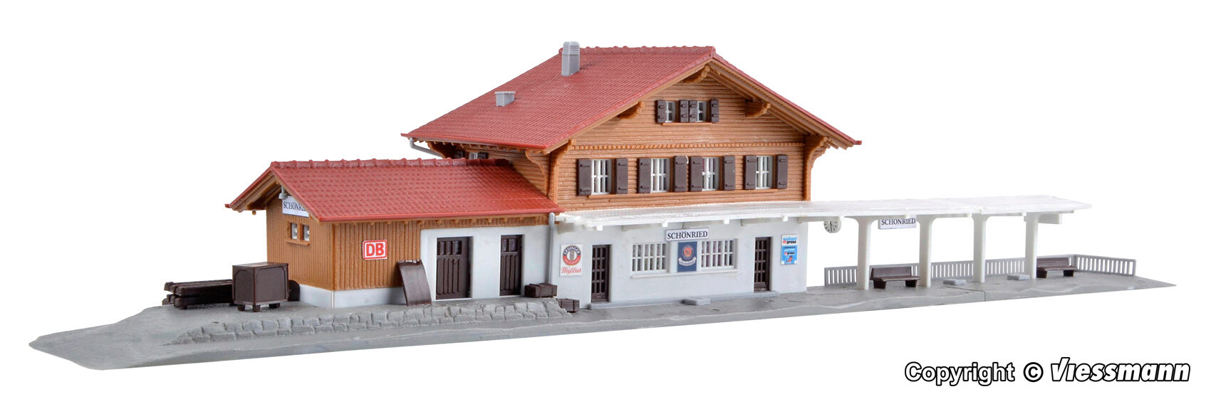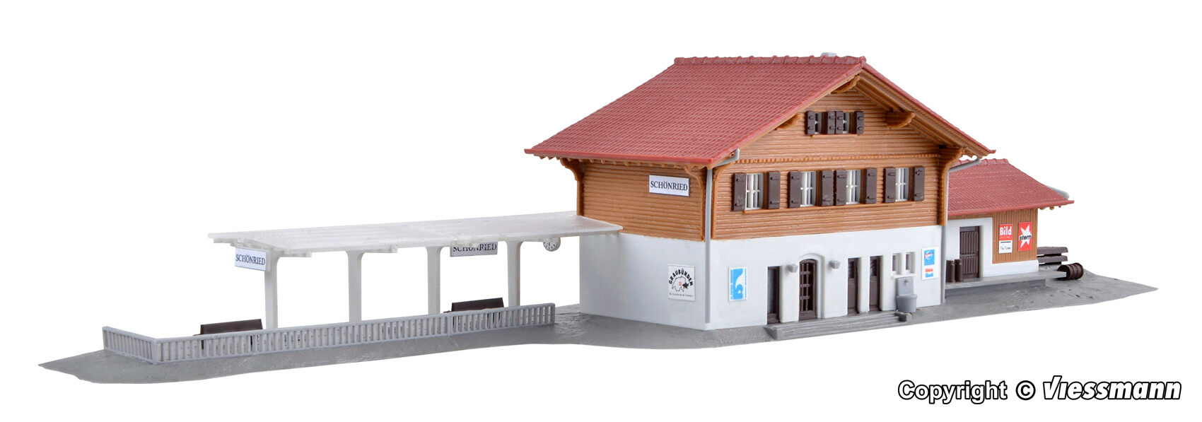 Bausatz. Schönried ist ein Dorf im Saanenland im Kanton Bern, Schweiz. Der Bahnhof gehört zur Montreux-Berner Oberland-Bahn (MOB) an der Linie Zweisimmen-Montreux. L 30,5 x B 6,5 x H 6,2 cm. Schwierigkeitsgrad: 2 (Fortgeschrittene).