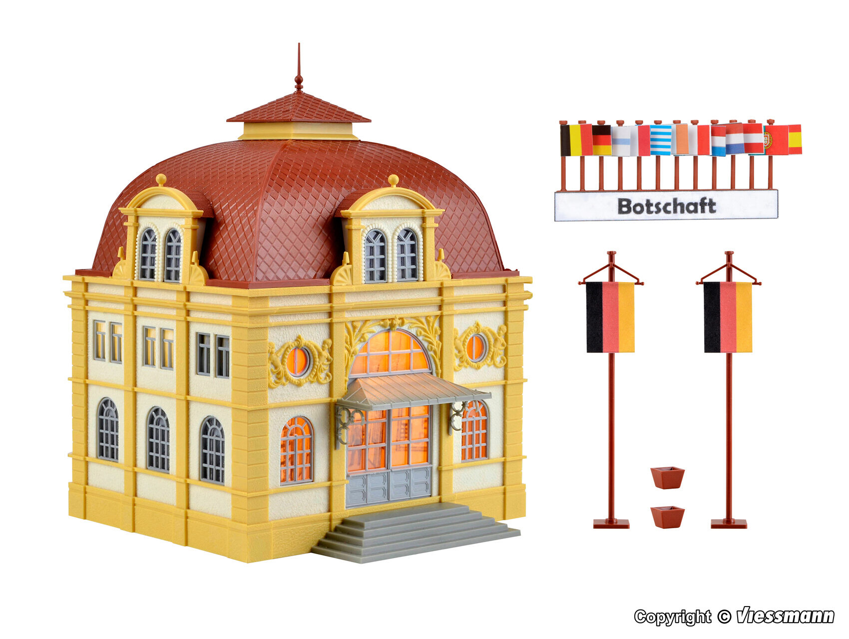 H0 Botschaftsgebäude mit LED-Beleuchtung, Funktionsbausatz
