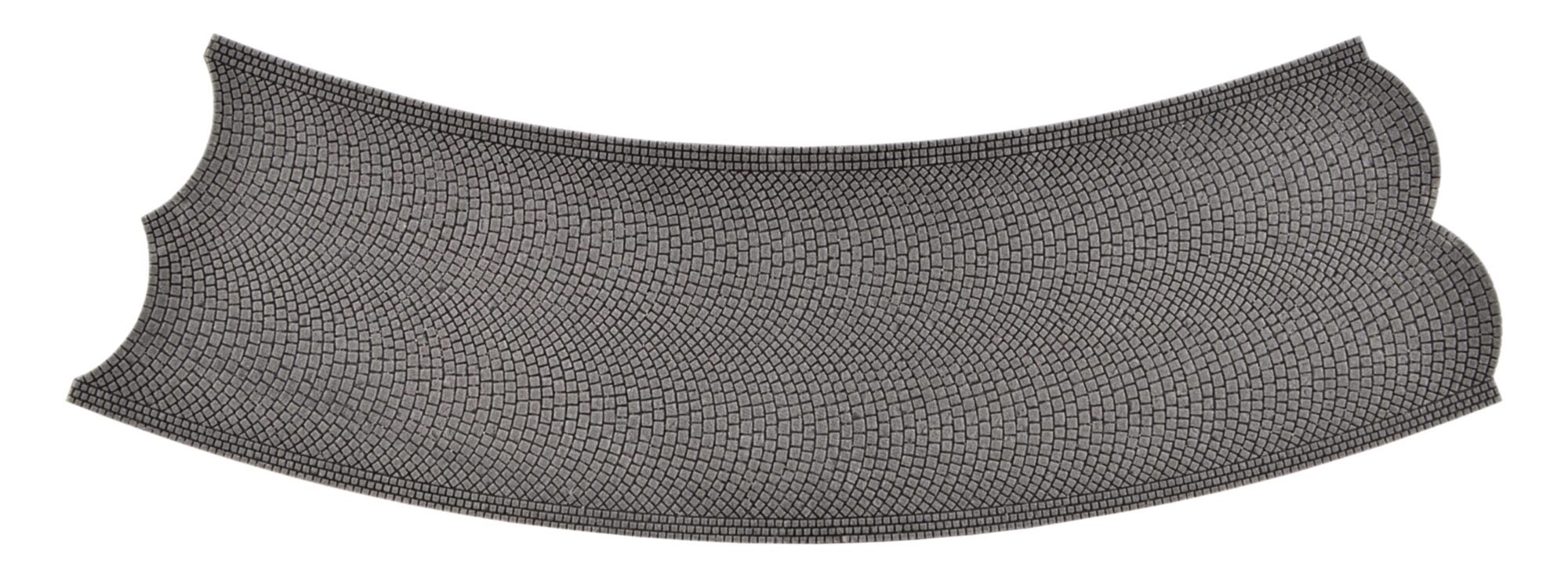 H0 Strassenplatte Kopfsteinpflaster aus Steinkunst, 45°-Kurve, gegenläufig, Radius 30 cm
