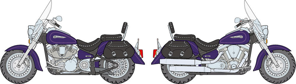 Große Cruiser-Bikes sind auf der ganzen Welt beliebt, und viele Besitzer möchten sie nur an ihren eigenen Geschmack anpassen. Dieser aktualisierte Bausatz bildet ein solches Motorrad nach, eine maßgeschneiderte Version der mächtigen Yamaha XV1600 Road Star, deren Standardversion als Artikel 14080 veröffentlicht wurde. Die XV1600 Road Star war mit einem 1.600 ccm V-Twin ausgestattet, der sie zu einer der besten machte. Leistungsstarke Motorräder dieser Zeit waren mit Teles kopierbarer Vorderradaufhängung und einem nicht sichtbaren hinteren Stoßdämpfer für einen klassischen Hardtail-Look, der die niedrigen Linien betont, und die großzügige Verwendung von Chrom ausgestattet. Kundenspezifische Bikes hatten Seitentaschen, eine größere Windschutzscheibe und viele weitere Variationen.
