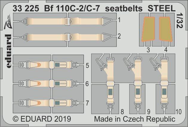 Bf 110C-2/C-7 seatbelts STEEL for Revell
