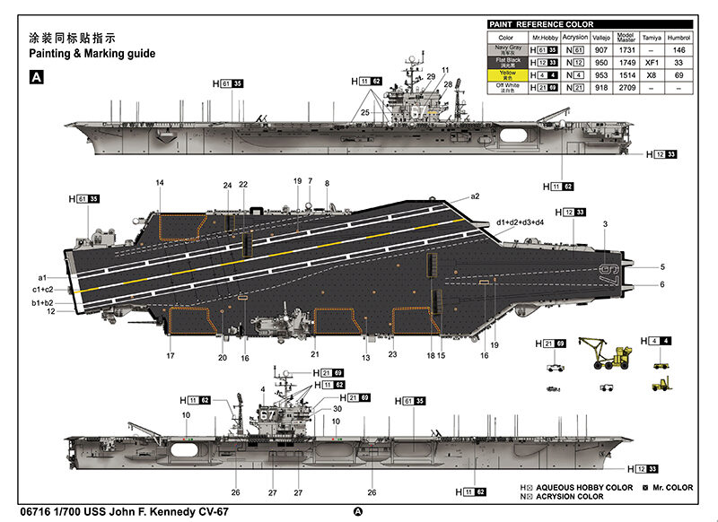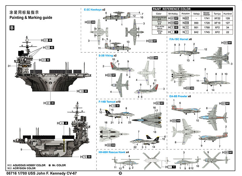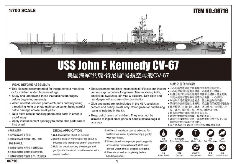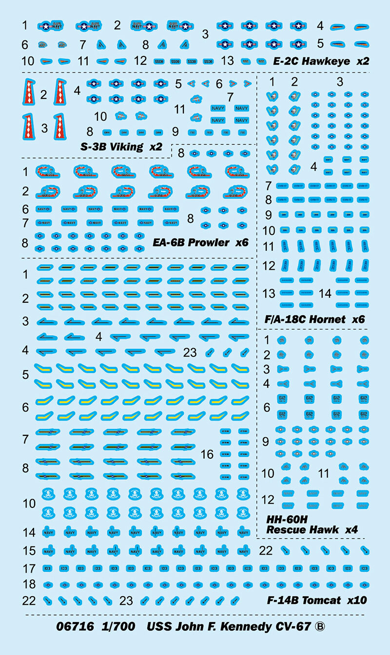 | More Features | - Detailed Hull is a one piece part - Detailed flight deck and hangar deck -Extensive photo-etched details included -Aircraft Wing includes: E2C, EA-6B,HH-60H, S-3B,F/A-18C, F-14D -Complete ship and aircraft decal sets |
