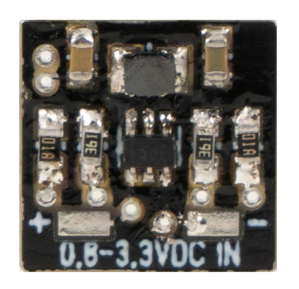 Kompakte, elektronische Schaltung, die aus einer Eingangsspannung im Bereich von 0,8-3,3 V eine konstante Ausgangsspannung von 3,3 V erzeugt. Das Modul ermöglicht es z. B. LEDs in Car System-Fahrzeugen zu betreiben, die mit nur einer Akkuzelle (1,2 V) fahren. An seinen Ausgängen befinden sich entsprechende Vorwiderstände, so dass die SMD-LEDs, Art. 163750, Art. 163751, Art. 163752 und Art. 163753 direkt angeschlossen werden können.