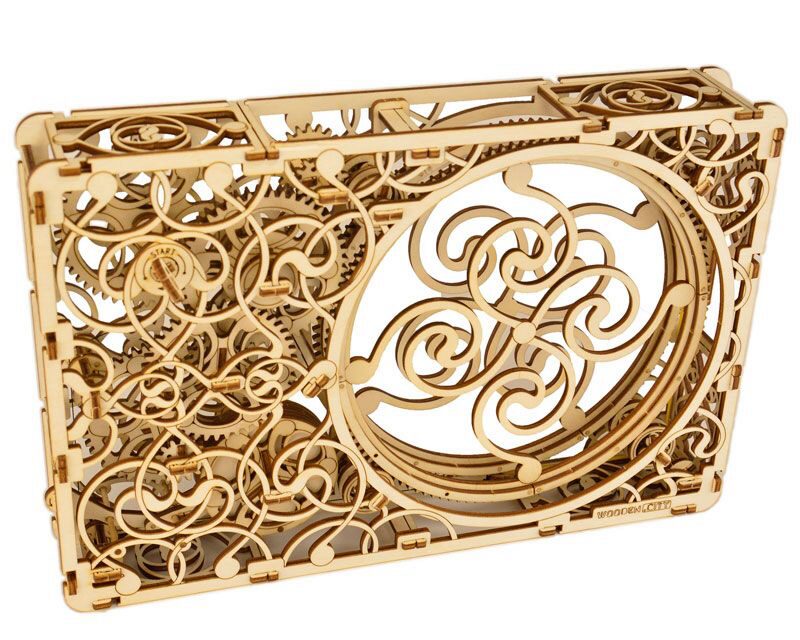 Bausatz aus gelaserten Holzteilen. Reichhaltig bebilderte Step-by Step Anleitung. Eine Mechanik wird mittels eines speziellen Schlüssels aufgezogen. Nach umlegen des Auslösehebel entsteht durch die drehenden Elemente ein faszinierendes Bild mit erstaunlichen optischen Effekten. Kein Klebstoff notwendig. Empfohlen für Modellbauer ab 14 Jahren.