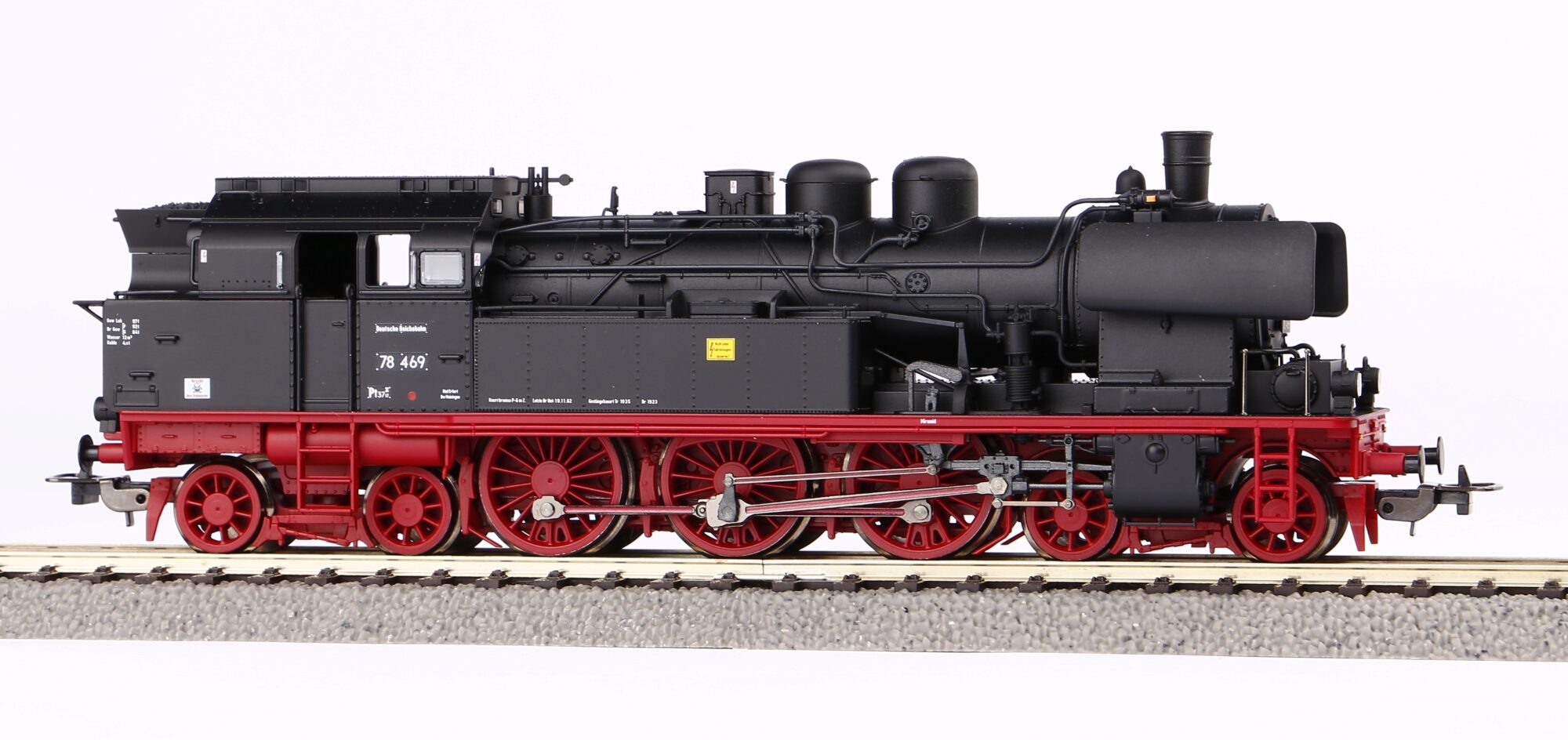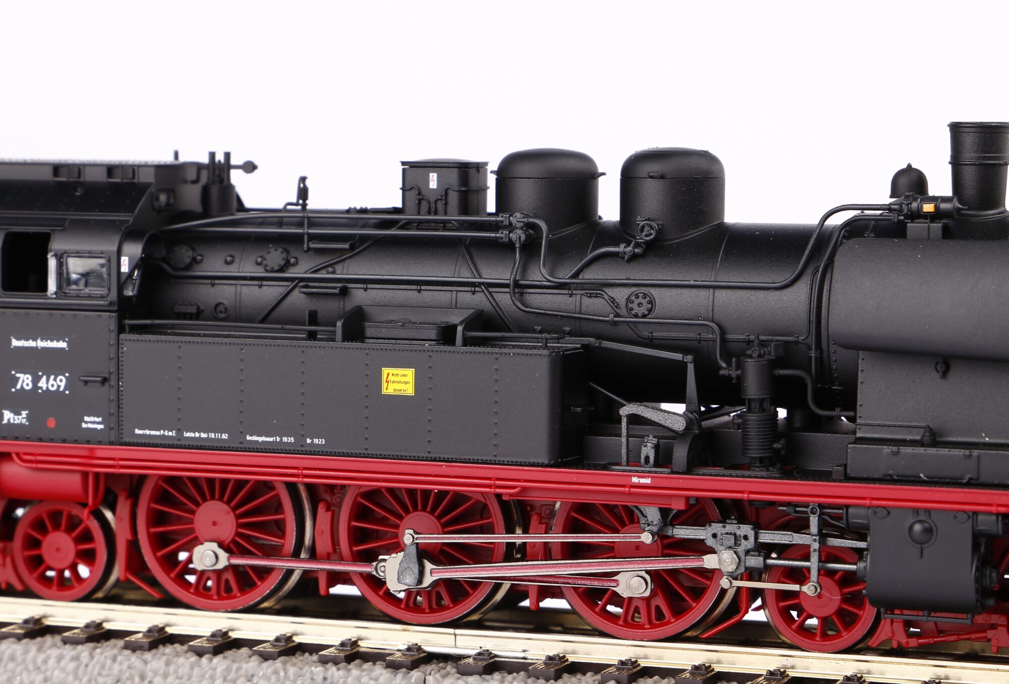 Endlich kommt eine zeitgemäße Ablösung der sehr beliebten und früher weitverbreiteten BR 78 in Form einer Neukonstruktion aus dem Hause PIKO – und mit ihr die erste Dampflok in der Produktlinie Expert. Das Modell hängt den etablierten Standard des Expert-Sortiments noch etwas höher. Nahezu alle Leitungen wurden freistehend ausgeführt, Führerhaus, Wasserkästen und Rauchkammer zieren feinste Nachbildungen der Nietköpfe. Radsatzsterne und Steuerung konnten durch die verwendeten Materialien höchst filigran ausgeführt werden. Für ausgezeichnete Fahreigenschaften sorgt der fünfpolige PIKO Motor mit Schwungmasse. Zusatzgewichte im Kessel und zwei Haftreifen sorgen für eine hohe Zugkraft. Ab Werk ist ein PIKO SmartDecoder 4.1 mit mfx-Fähigkeit eingebaut. Ebenfalls mit minimalem Aufwand können nachträglich ein Lautsprecher und ein Rauchsatz eingebaut werden. Für authentische Betriebsstimmung sorgt die fahrtrichtungsabhängige Beleuchtung in LED-Ausführung. Bremsschläuche zum Nachrüsten liegen bei.