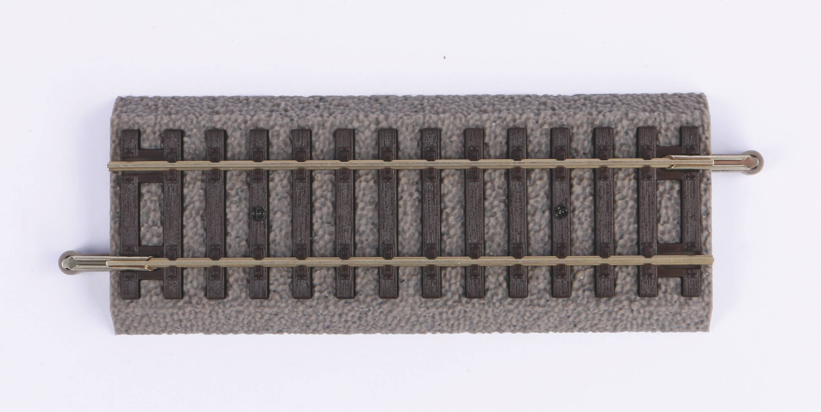 PIKO A-Gleis mit Bettung, feindetaillierten Schwellen und realistischer, scharfkantiger Schotternachbildung und Farbgestaltung. Gerades Gleis mit 107 mm Länge.