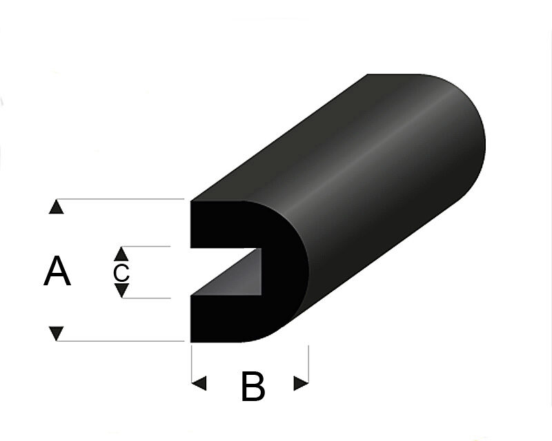 Rechteckprofil mit angerundeten Ecken und Schlitz aus elastischem Gummi. Einsetzbar als Kantenschutz oder Scheuerleiste und andere Anwendungen. Zum verkleben eignet sich besonders DELUXE Roket Cyano Gel Artikel-Nr. 44059