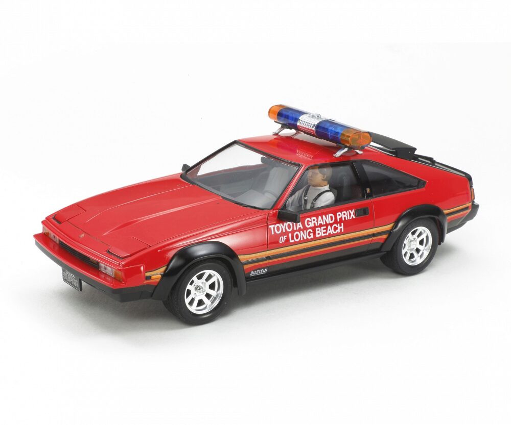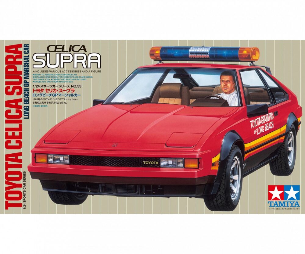 Das Standmodell ist eine Nachempfindung des Celica Supra Marshallautos, welches während des Formel-1 Rennens 1982 in Long Beach verwendet wurde. Der getunte Motor des Toyotas leistete bis zu 230 PS und hatte somit eine Höchstgeschwindigkeit von 230 Km/h. Aufgrund eines übergroßen sportlichen Kotflügels als auch Heckspoilers sorgte für einen imposanten Anblick, als der Wagen über die Rennstrecke fuhr. Die Tamiya Modellbaukastenversion besticht durch die hohe Passgenauigkeit als auch durch die Detailtreue.
