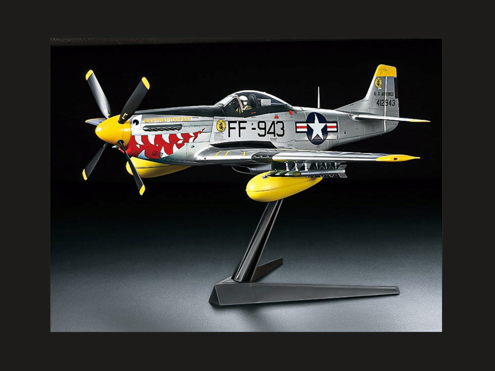 Das Standmodell ist eine Nachempfindung des Kampfflugzeugs Mustang F-51D, welches während des Koreakrieges zum Einsatz kam. Die TAMIYA Modellbaukastenversion besticht durch ihre hohe Passgenauigkeit als auch durch die detailgetreue Verarbeitung, wie beispielsweise die eckigen Propellerspitzen, als auch zwei Arten von Funkgeräten, welche das Flugzeug von anderen Varianten des späten zweiten Weltkrieges unterscheiden.