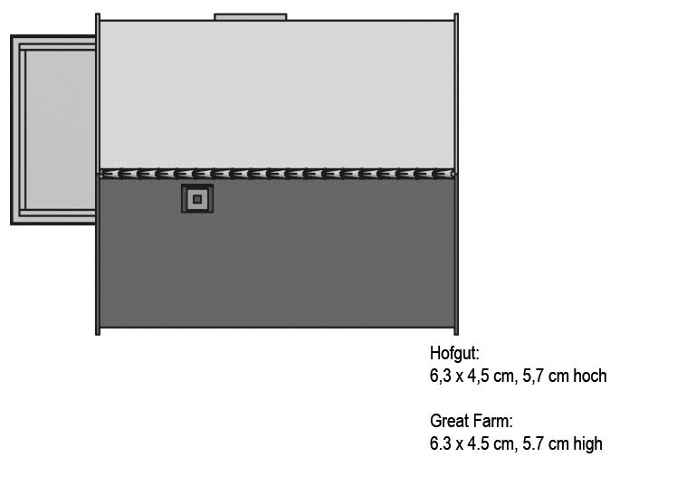 Ratskeller: 6,3 x 4,5 cm, 5,7 cm hoch