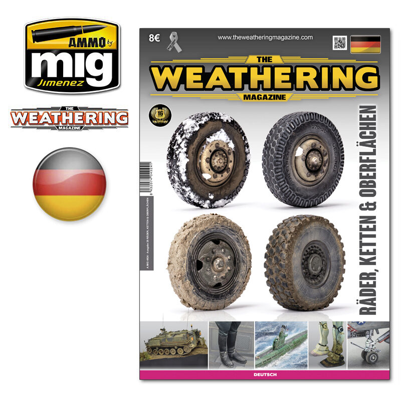 The Weathering Magazine is the only magazine completely focused on the painting and aging techniques of scale models and figures, created to meet your modelling aspirations. In this issue bring you step by step articles focused on representing all the effects that can be seen on contact surfaces such as wheels, tracks, wings, and even boots! Through the inspiring work done by our collaborators, you will learn the most innovative and appropriate techniques specific to each subject, allowing you to realistically customize your vehicles and integrate the various elements determined by each subject’s environment. This is a fundamental consideration for all modelers, and in this issue you will learn critical aspects of placing your favorite models in a given setting, as well as how to apply the type of wear specific to the peculiarities of the physical environment. This issue is lush with inspiration and far too many tips and techniques to list. As you have come to expect from The Weathering Magazine, this issue is composed of articles lush with step-by-step detailed explanations on how to execute each technique and use each product with ease through high-quality images and concise descriptions. This long-awaited new issue is destined to be one of your favorite resources, where each page will be a source of inspiration for all.