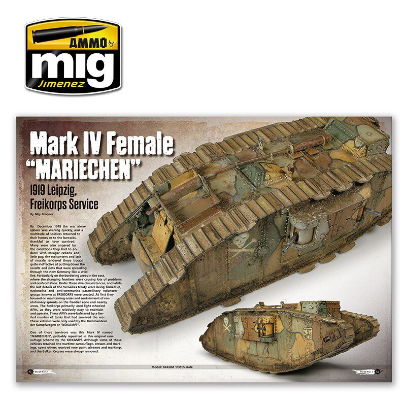 This the first Special Issue of the Weathering Magazine, the only modeling publication completely devoted to painting and weathering techniques. For this special edition we´ve chosen WWI as a subject. An historical introduction by the well-renown author Daniele Gugliemi, fruit of a in depth research work is included. Throughout 76 pages and over 200 pictures you´ll find detailed step-by-step articles showing different camouflage schemes, AFV painting techniques and a host of realistic weathering effects to take any model back to the battlefields of the Great War. All these techniques are valid for any WWI vehicle.This volume is complemented by the 24-page paperback 'The Great War', a comprehensive guide with over 30 color profiles of this era camouflage schemes. Free and only available purchasing the TWM special.
