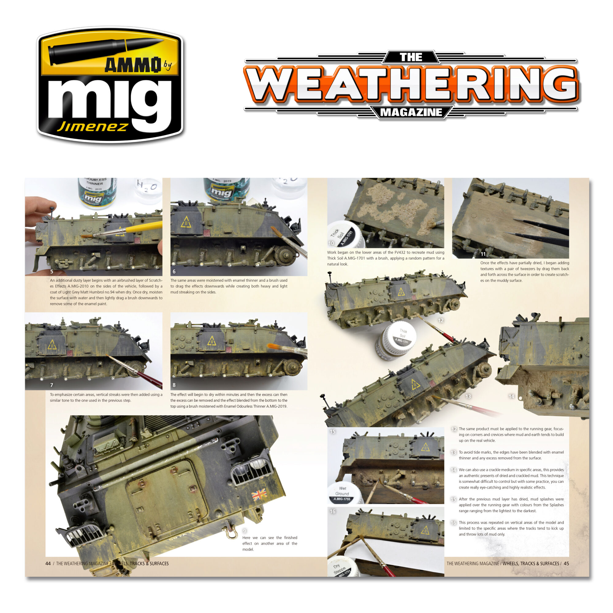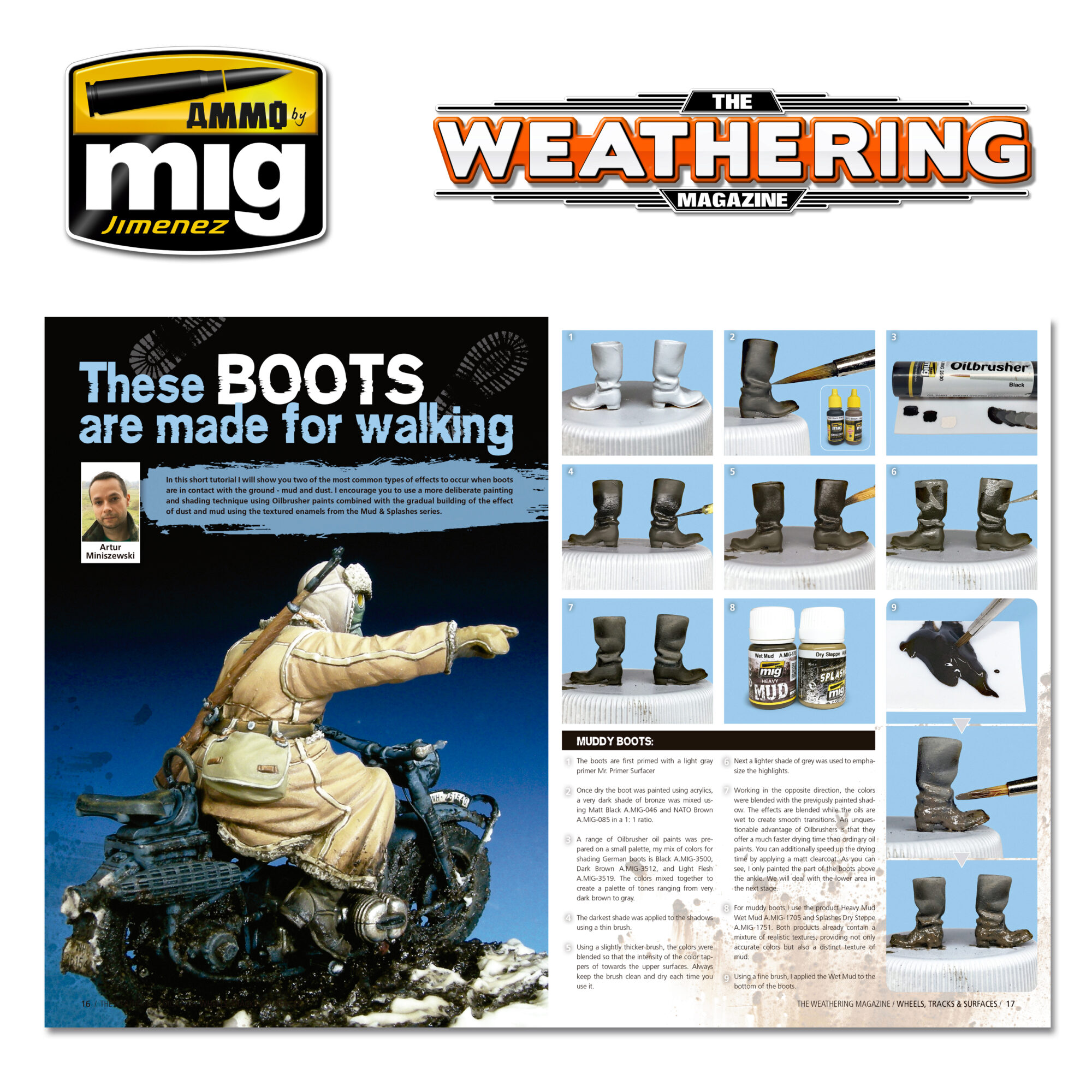 The Weathering Magazine is the only magazine completely focused on the painting and aging techniques of scale models and figures, created to meet your modelling aspirations. In this issue bring you step by step articles focused on representing all the effects that can be seen on contact surfaces such as wheels, tracks, wings, and even boots! Through the inspiring work done by our collaborators, you will learn the most innovative and appropriate techniques specific to each subject, allowing you to realistically customize your vehicles and integrate the various elements determined by each subject’s environment. This is a fundamental consideration for all modelers, and in this issue you will learn critical aspects of placing your favorite models in a given setting, as well as how to apply the type of wear specific to the peculiarities of the physical environment. This issue is lush with inspiration and far too many tips and techniques to list. As you have come to expect from The Weathering Magazine, this issue is composed of articles lush with step-by-step detailed explanations on how to execute each technique and use each product with ease through high-quality images and concise descriptions. This long-awaited new issue is destined to be one of your favorite resources, where each page will be a source of inspiration for all.