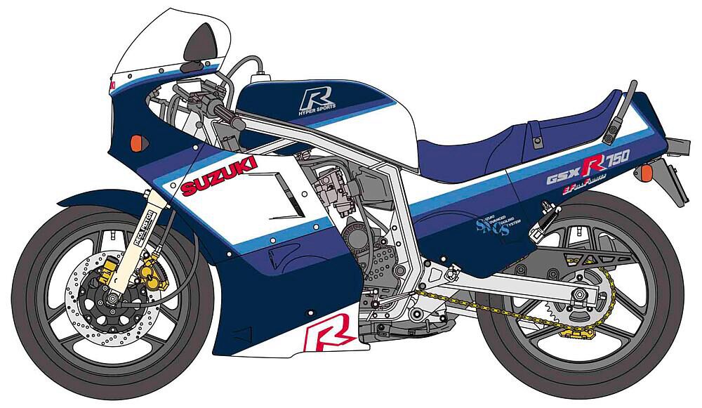 Plastikmodellbausatz eines japanischen Motorrades mit 166 Teilen. Länge gebaut: 177 mm. Breite: 60 mm.