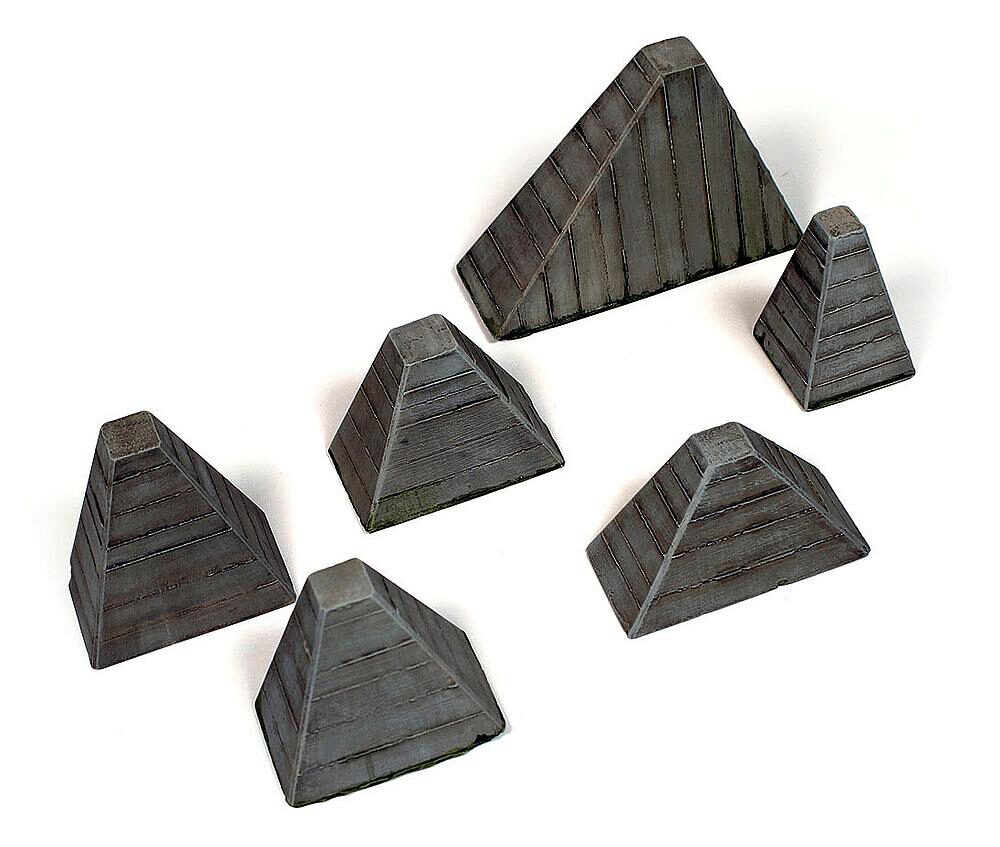 6 Verschiedene Panzer-Barrieren wie sie im 2. Weltkrieg in Europa verwendet wurden. Nicht coloriert. Ideal für den Dioramenbau.