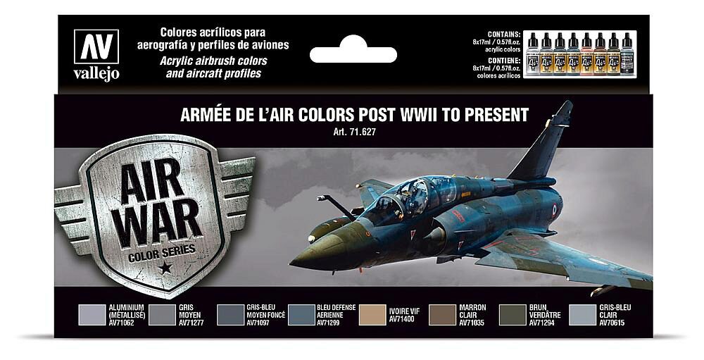 Farb-Set, Flugzeuge der französischen Luftwaffe nach dem WWII. Beinhaltet je 1 x 71062, 71277, 71097, 71299, 71400, 71035, 71294, 70615.