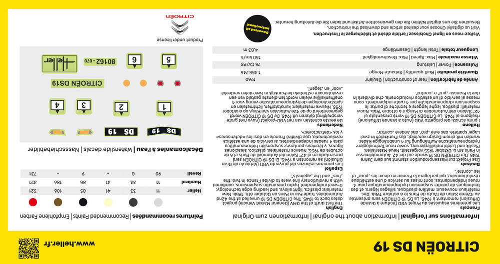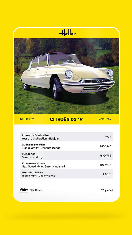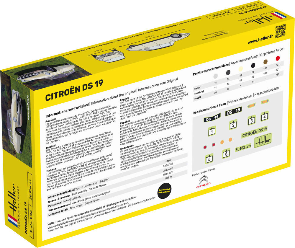 Das Projekt zur Massenproduktion stammen aus dem Jahre 1945. Der CITROËN DS 19 wurde auf der 42. Automobilmesse in Paris am 6. Oktober 1955 vorgestellt. Neue Materialien: Plastik und Leichtmetalllegierung, sowie neue Technologien: hydropneumatische Aufhän