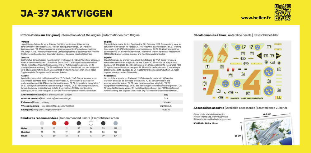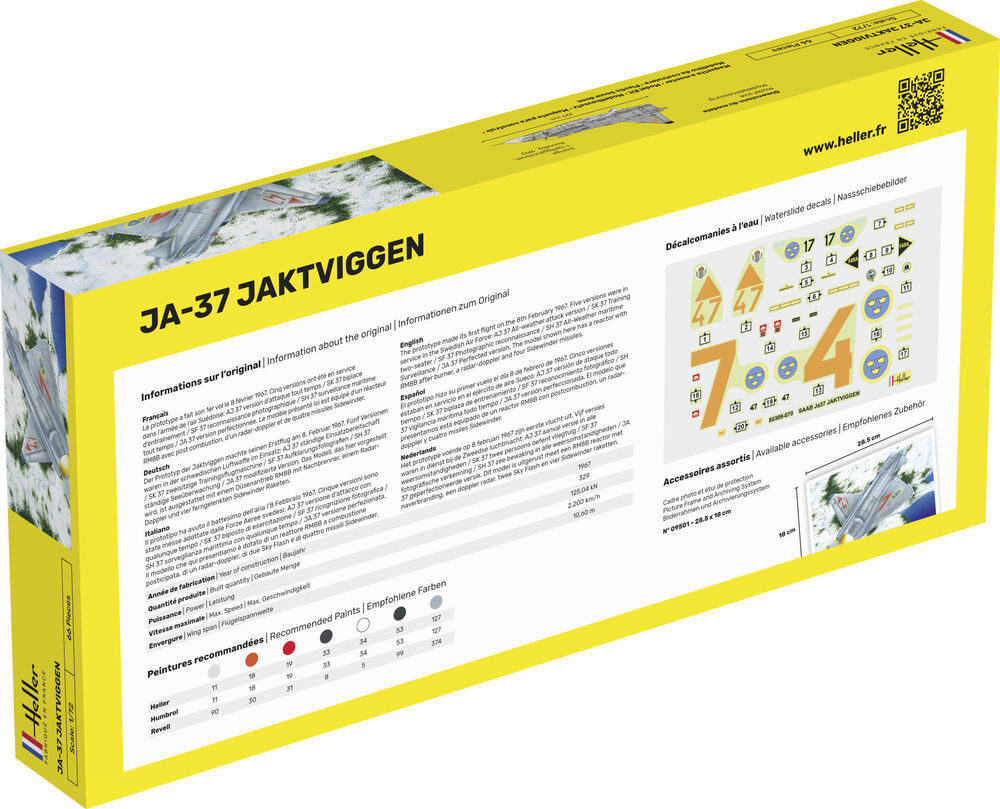 Der Prototyp der Jaktviggen machte seinen Erstflug am 8. Februar 1967. Fünf Versionen waren in der schwedischen Luftwaffe im Einsatz: AJ 37 ständige Einsatzbereitschaft / SK 37 zweisitzige Trainingsflugmaschine / SF 37 Aufklarungsfotografien / SH 37 ständ