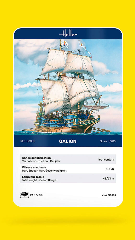 Die Nachbildung der “Spanischen Galeone ” von Heller, haben wir einigen Unterlagen aus der damaligen Zeit zu verdanken. Die Galeonen waren große Umschlagschiffe, auf denen die Spanier während der Regierungszeit von Karl V. meist Gold und sonstige Güter au