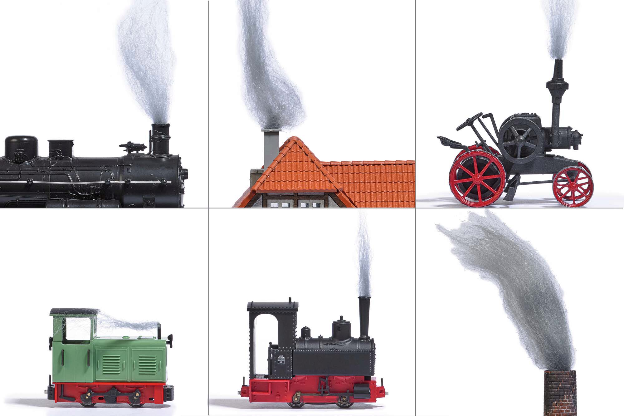 Mit der Rauchwolle lassen sich Rauchschwaden realistisch an Schornsteinen von Gebäuden und Dampflokomotiven gestalten. Auch für die Darstellung von Abgasen an Diesellokomotiven, Traktoren sowie Rauchschwaden an brennenden Häusern usw. geeignet. Die Rauchwolle ist sehr ergiebig, bereits mit dem Inhalt einer Verpackung lassen sich komplette Städte und Industriegebiete realistisch mit Modell-Rauch dekorieren. Inhalt: 5 g.