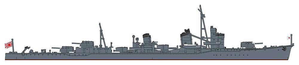 Plastikmodellbausatz eines japanischen WWII Zerstörers mit 89 Teilen. Markierung IJN 8th Destroyer SQ, 2941. Länge gebaut: 169 mm. Breite: 15 mm.