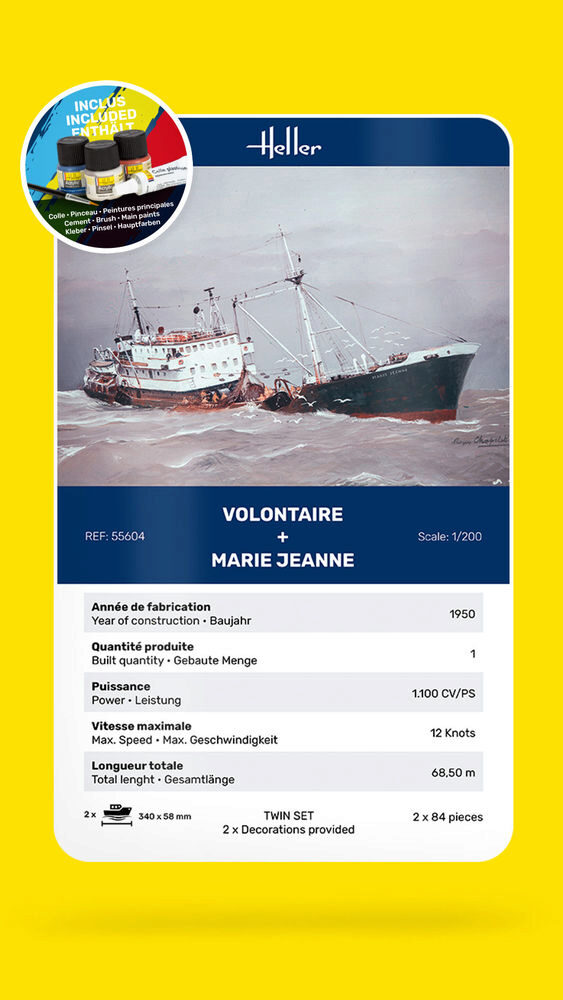 Der traditionelle Trawler der ANCIENS CHANTIERS DUBIGEON (ACD) aus Nantes, Le VOLONTAIRE (SM767) kam im Februar 1950 auf den Markt. Es wurde von der ASSOCIATION DES CHALUTIERS MALOUINS ausgerüstet und sein Heimathafen war SAINT-MALO. MARIE JEANNE war das