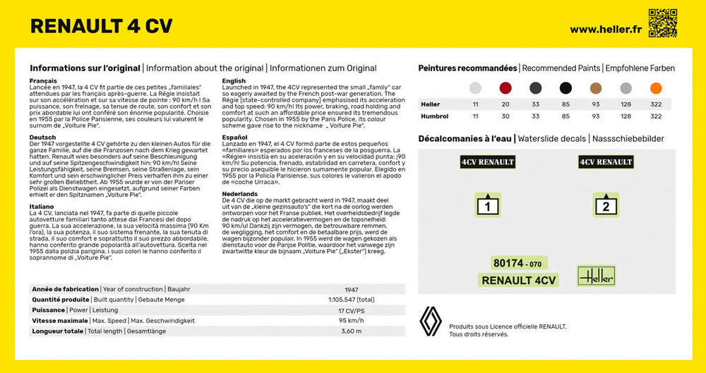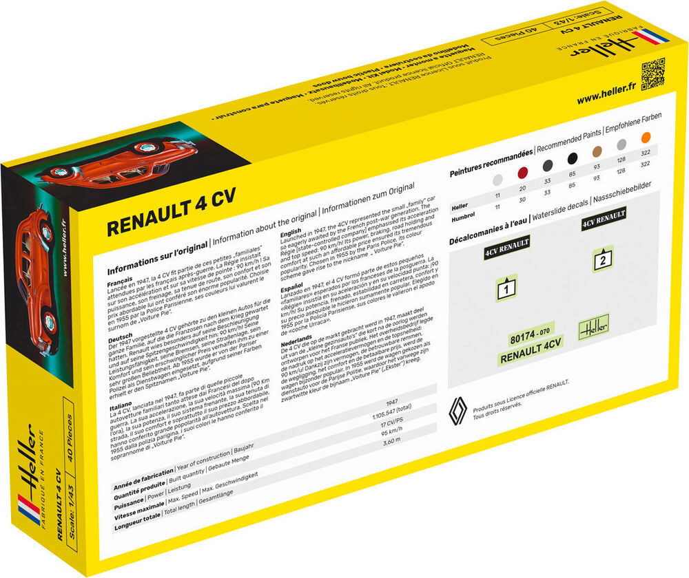 Der 1947 vorgestellte 4 CV gehörte zu den kleinen Autos für die ganze Familie, auf die die Franzosen nach dem Krieg gewartet hatten. Renault wies besonders auf seine Beschleunigung und auf seine Spitzengeschwindigkeit hin: 90 km/h! Seine Leistungsfähigkei