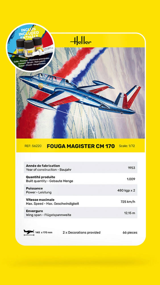 FRANKREICH war das erste Land, das ein Düsenflugzeug mit wirtschaftlicher Wartung baute, die FOUGA CM 170. Aufgrund ihrer technischen Eigenschaften war die MAGISTER das erste Trainingsflugzeug, dass die komplette Ausbildung eines Piloten zuließ.