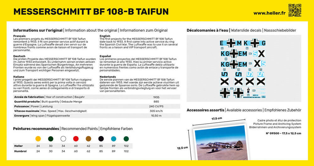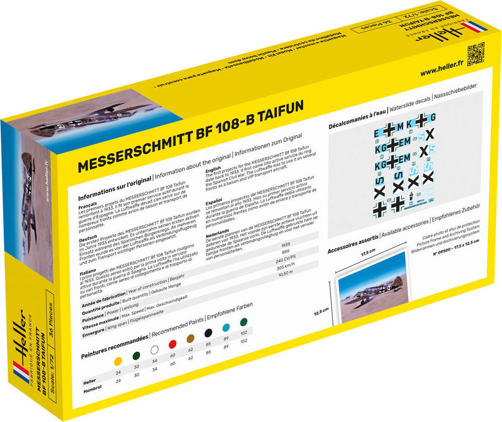 Die ersten Projekte des MESSERSCHMITT Bf 108 Taifun wurden im Jahre 1933 entwickelt. Es unternahm seinen ersten aktiven Einsatz während des Spanischen Bürgerkriegs. An mehreren Fronten wurde es von der Luftwaffe als Verbindungsflugzeug und zum Transport w