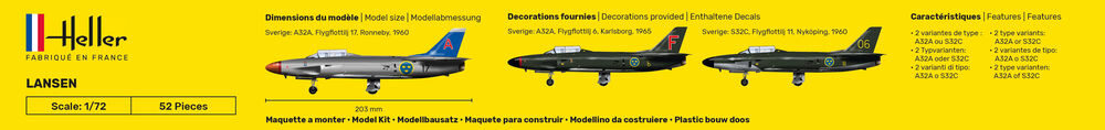 In den letzten Monaten des Jahres 1955 erhielt Flygvapnet seine erste Saab 32 LANSEN. Dieses einstrahlige und zweisitzige Flugzeug von Svenska AeropIan AB (SAAB) war das erste schwedische Flugzeug, das die Schallmauer durchbrach. Es wurden 456 Stück in dr