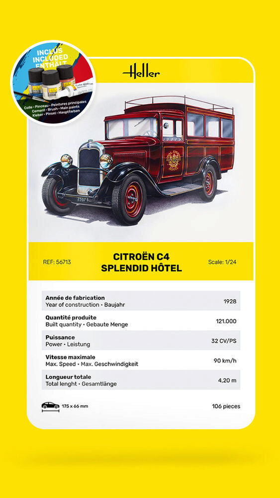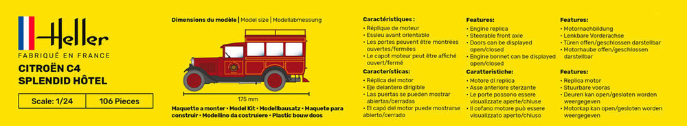 Mit einer für die damalige Zeit völlig neuen Technik und inspiriert von amerikanischen Konstruktionstechniken, waren die C4 äußerst robuste Fahrzeuge. Das von HELLER angebotene Modell erinnert an einen Fahrzeugtyp, der zwischen den beiden Kriegen von Luxu