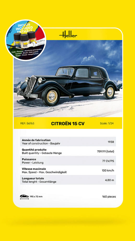 Der Wagen „TRACTION“ (Vorderradantrieb) von CITROËN wurde auf der Automesse 1934 vorgestellt. Damals war er in drei Ausführungen lieferbar: “7”, “11” und “22”. André Lefèbvre übernahm die Konstruktion dieses revolutionären Fahrzeuges. Der “15 six” war ein