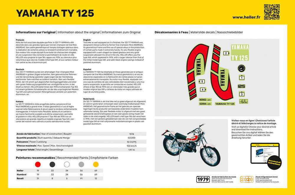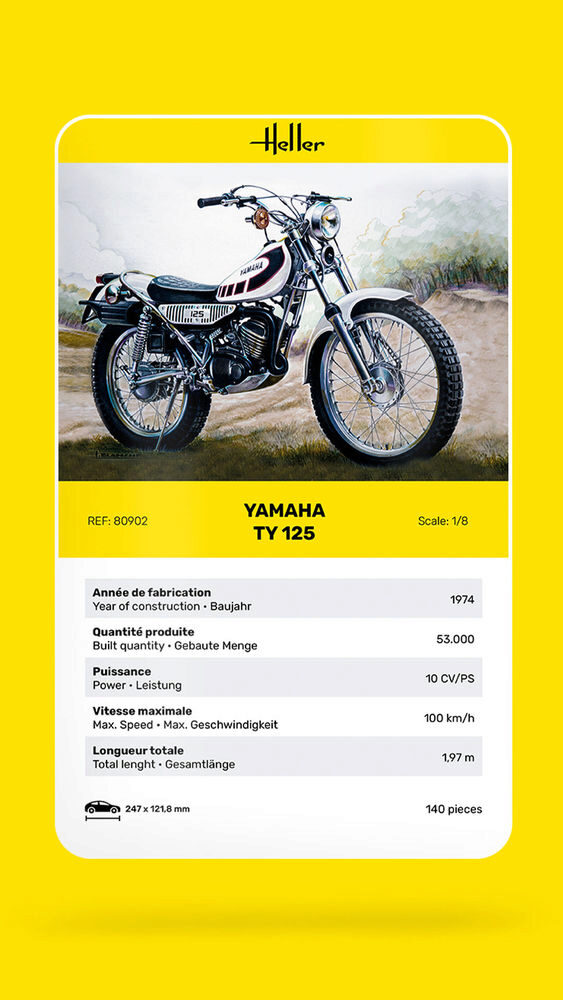 Das 125 TY YAMAHA wurde vom ehemaligen Trial-Champion Mick ANDREWS in groben Zügen entworfen. Sein geometrischer Rahmen und die Verwendung spezieller Legierungen bei der Herstellung bestimmter Teile machten es äußerst handlich. Sein sehr flexibler Motor,