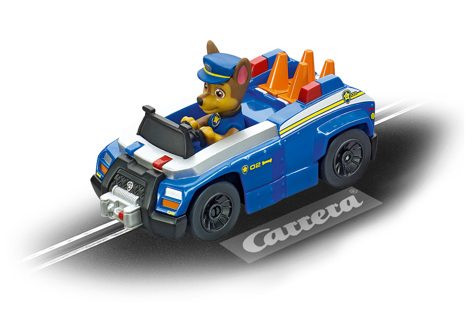 Die niedlichen Helden von PAW Patrol machen ab jetzt Deine Carrera GO!!! Rennbahn sicherer und flitzen in ihren Einsatzwagen um die Kurven. Wie in der beliebten TV-Serie sind die kleinen Hunde auch bei Carrera mit Mut und Freude im Einsatz. Jede Menge Spaß und Action sind also garantiert, wenn Chase in seinem coolen, blauen Polizeiwagen mit seinen Freunden um die Wette fährt. In der TV-Serie ist Chase immer als erster am Einsatzort - wird Dir das auf Deiner Carrera Rennbahn auch gelingen?