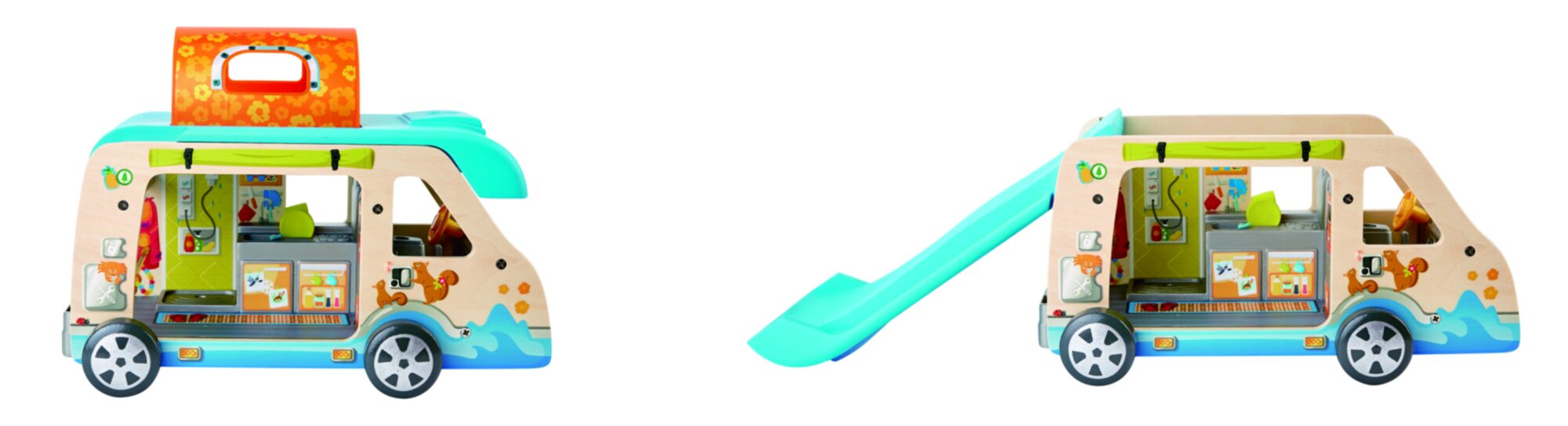 Das nächste Campingabenteuer mit Picknick, Surfen, BBQ und sogar Drachenfliegen wartet – im Wohnmobil mit Puppen und Zubehör!