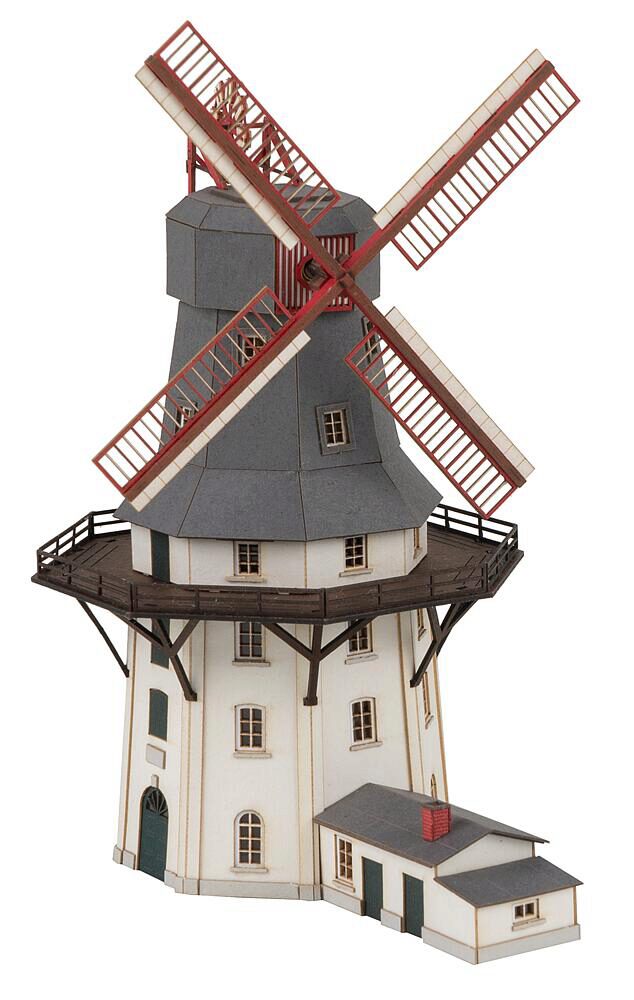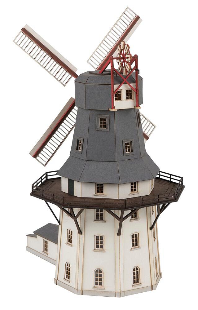 Holländerwindmühle mit achteckigem Grundriss und einer umlaufenden Galerie mit Geländer nach einem Originalvorbild im Bremer Ortsteil Oberneuland, das heute unter Denkmalschutz steht.