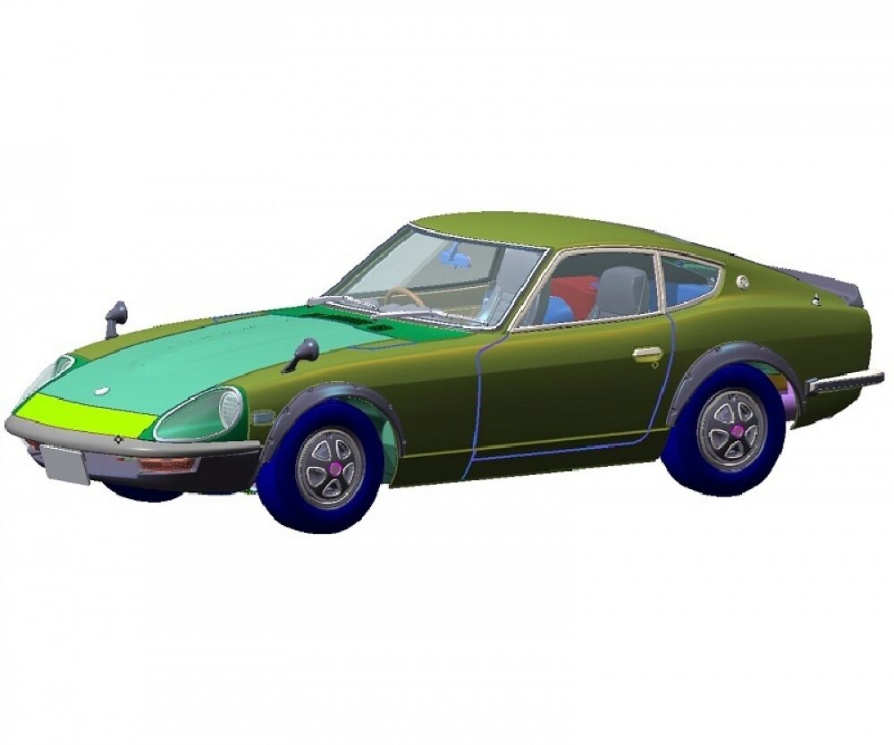 Die Fairlady 240ZG von Nissan, ein spezielles Modell für den japanischen Markt, und das Spitzenmodell von drei Variationen (240Z, 240Z-L und 240ZG), kam im November 1971 auf den Markt. Für den Export nutzte Nissan die Modellbezeichnungen Datsun 240Z, 260Z und 280Z. Die Fairlady hatte einen 2,4-Liter-Motor, bestimmendes Merkmal war die längere G Nase. Das Modell basiert auf intensiven Studien des realen Autos, die u.a. eine besonders realistische Darstellung des Motors erlauben. Ein Highlight ist die bewegliche Motorhaube mit Scharnier. Für den sportlichen Touch sorgen die Kotflügelverbreiterung und der Heckspoiler. Außerdem enthält der Bausatz im Maßstab 1:24 separate verchromte Fensterrahmenprofile und Scheinwerferrahmen sowie mehrteilige Räder.
