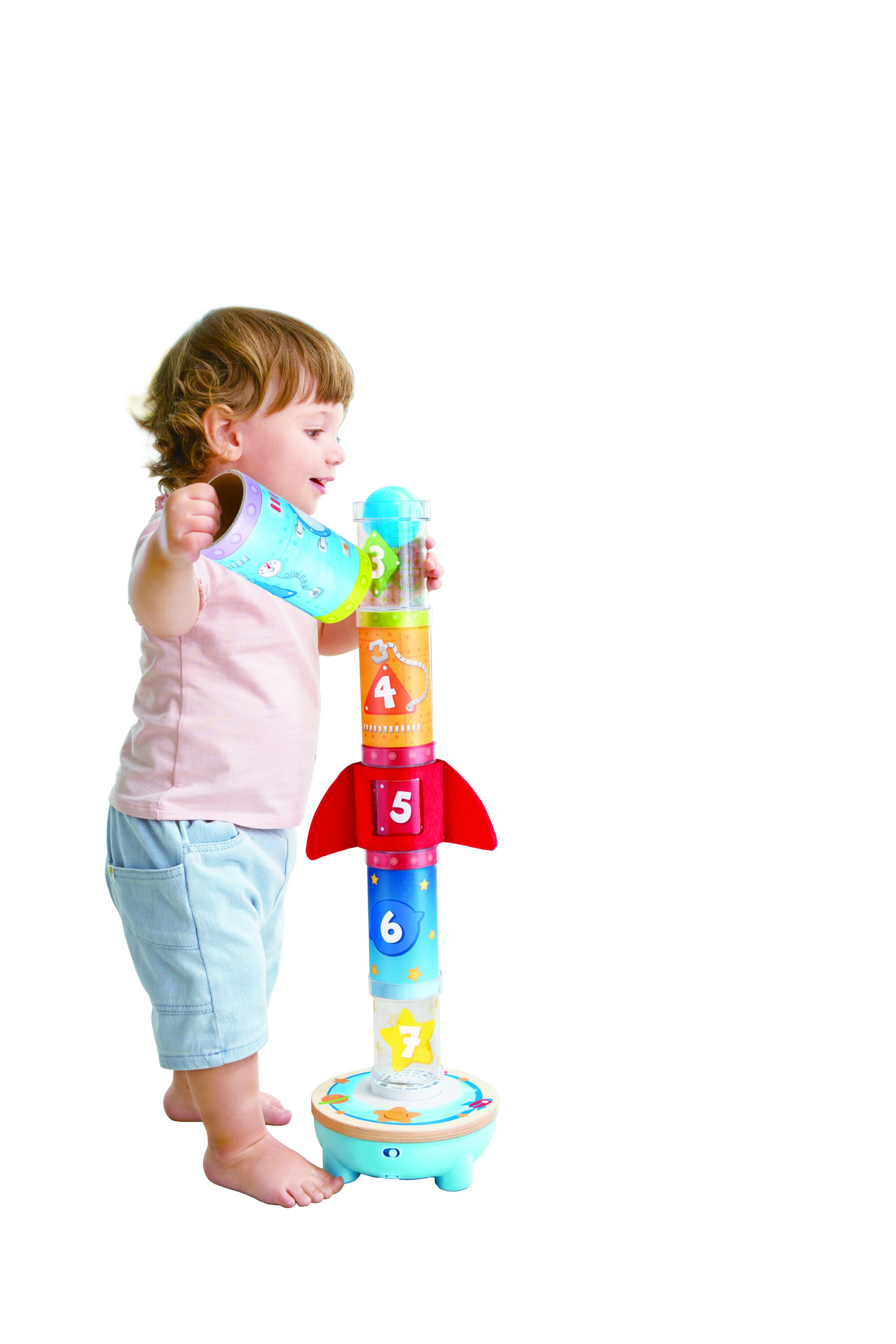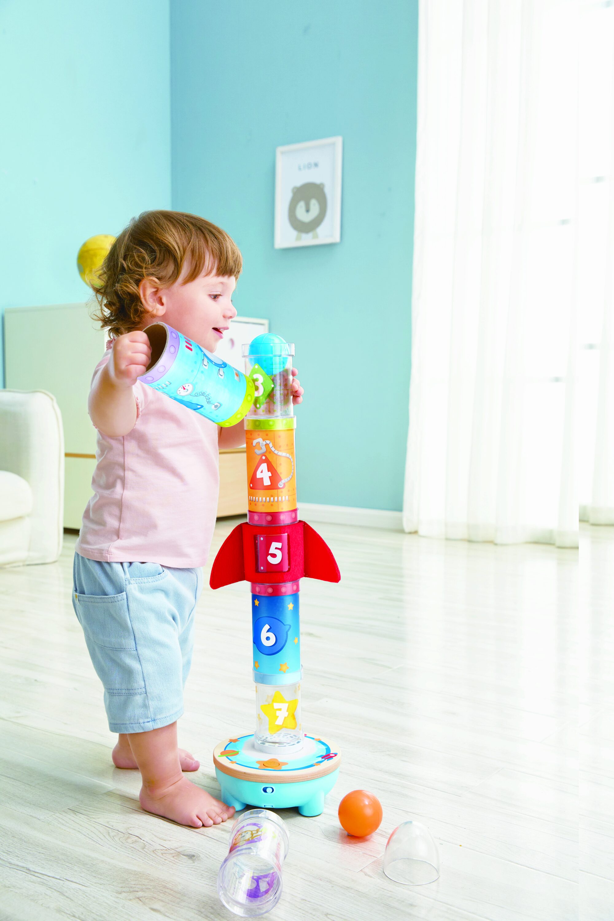 Alle Bälle fliegen hoch! Der Ventilator im Inneren der Rakete lässt sie ganz einfach hochsteigen. Ball einlegen, Ventilator einschalten und die Rakete aufsetzen. Deckel aufsetzen und zusehen, wie der Ball wieder ganz nach unten sinkt!