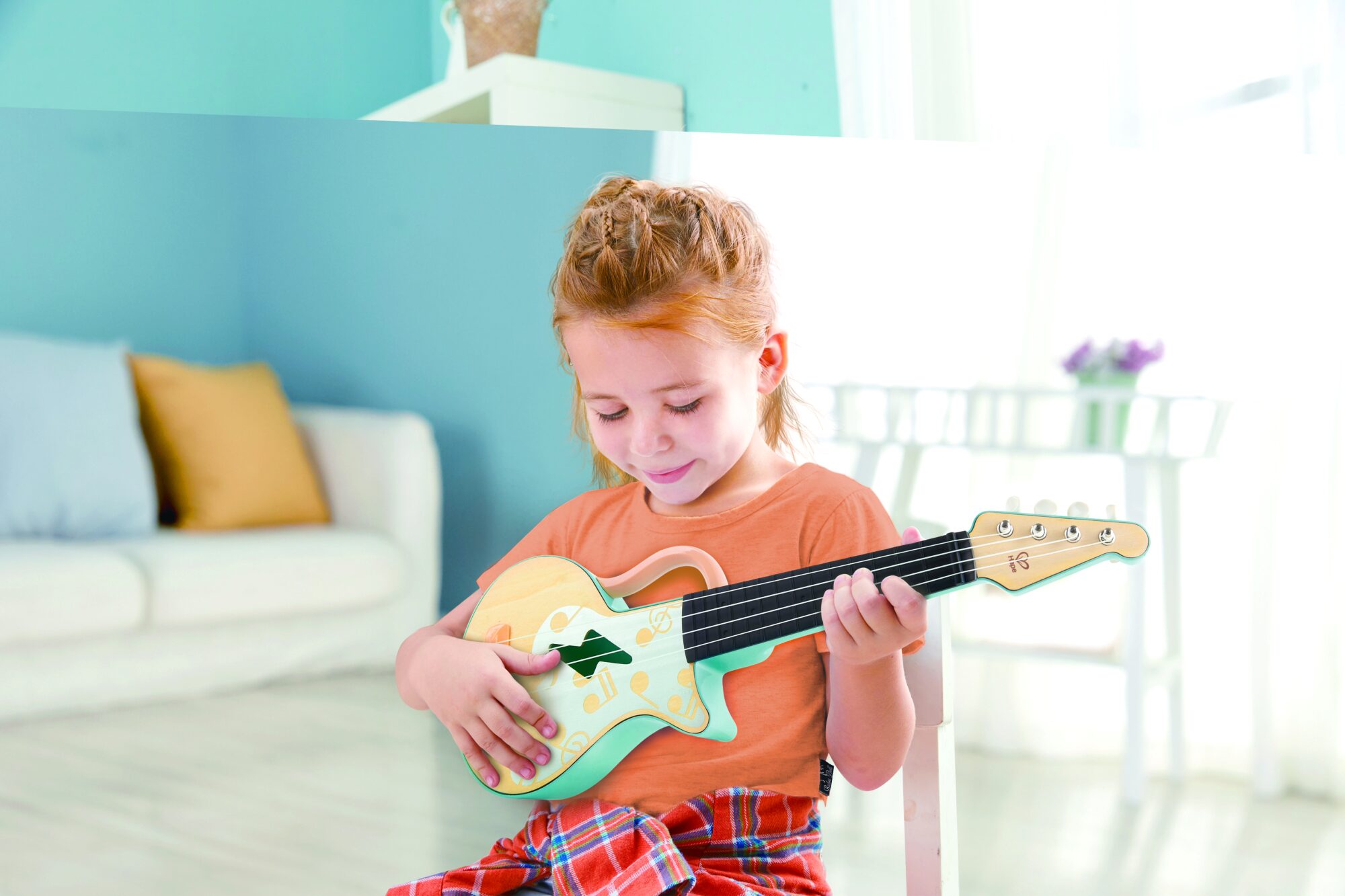 Mit der Rock'n'Roll Ukulele schlagen die Kleinen große Töne an! Saitensticker und Begleitheft erleichtern den Einstieg. Mit praktischem Griff. Saiten stimmen und mit dem beiliegenden Heft ganz einfach Losspielen! Perfekt für Anfänger-Rockstars! Die Ukulele mit realistischem Klang lässt sich dank praktischem Griff leicht transportieren. Sie verfügt über echten Saiten, die sich tatsächlich stimmen lassen und wird inklusive einer Ersatzsaite geliefert. Für Kinder ab 3 Jahre.