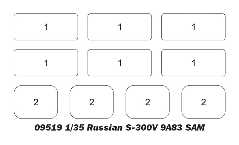 | Total Sprues | 25 sprues , upper hull , lower hull and missiles |