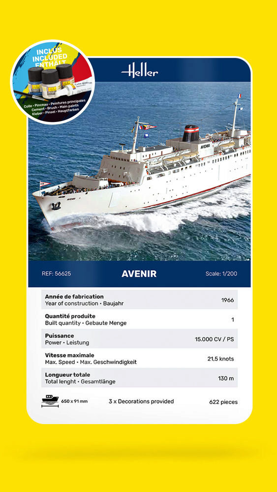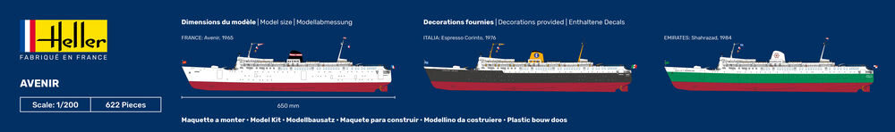 3 Decalvarianten enthalten:FRANCE: Avenir, 1965ITALIA: Espresso Corinto, 1976PANAMA: Shahrazad, 1984Seit den 1960er Jahren verbreiteten sich Autofähren im Mittelmeerraum.Anfang 1965 gab die Compagnie de Navigation Mixte mit Sitz in Marseille bei Forges et
