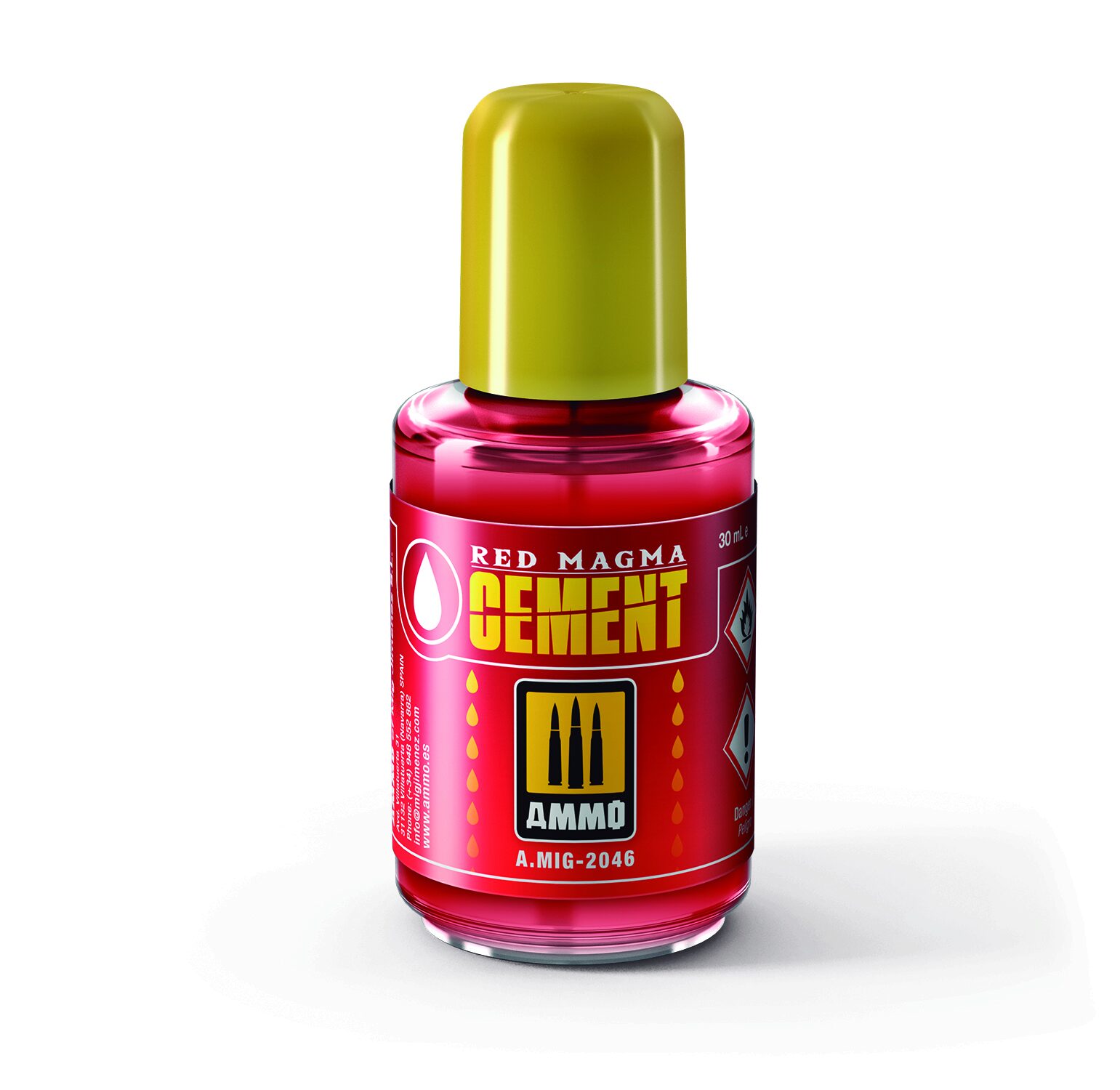 Roter, extradünner Zement zum Zusammenbauen von Plastikmodellen.