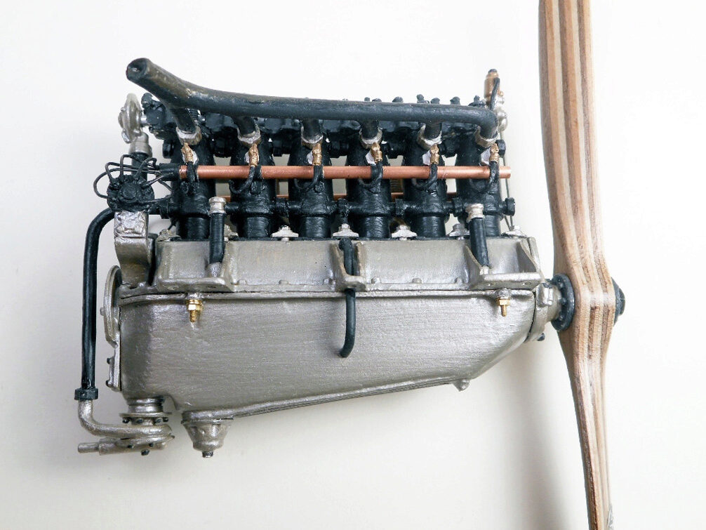 Holzmodellbausatz eines deutschen Flugzeugmotors. Dieses Modell aus dem Jahr 1917 wurde in der Albtatros D VA verwendet, wie sie auch der Rote Baron flog. Detailliertes Model aus Holz und Metall im Maßstab 1/16. Anleitung in Englisch.